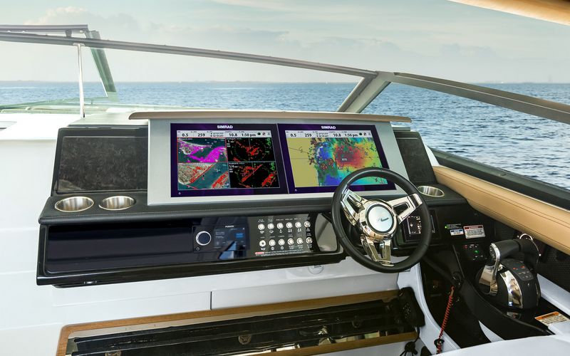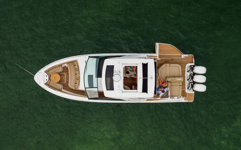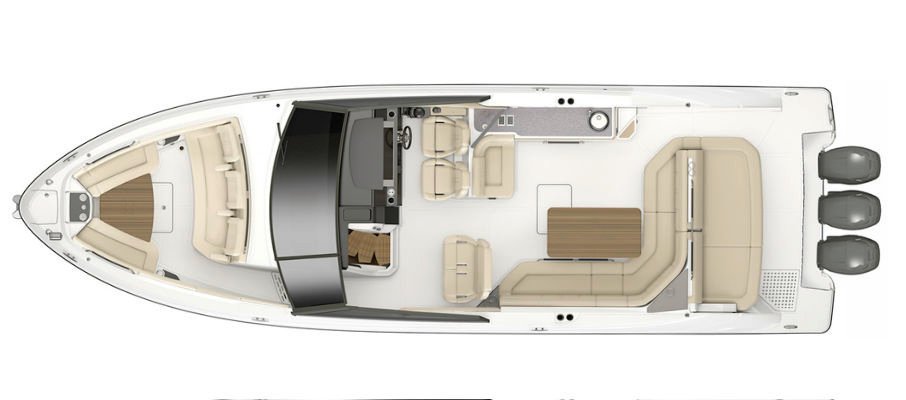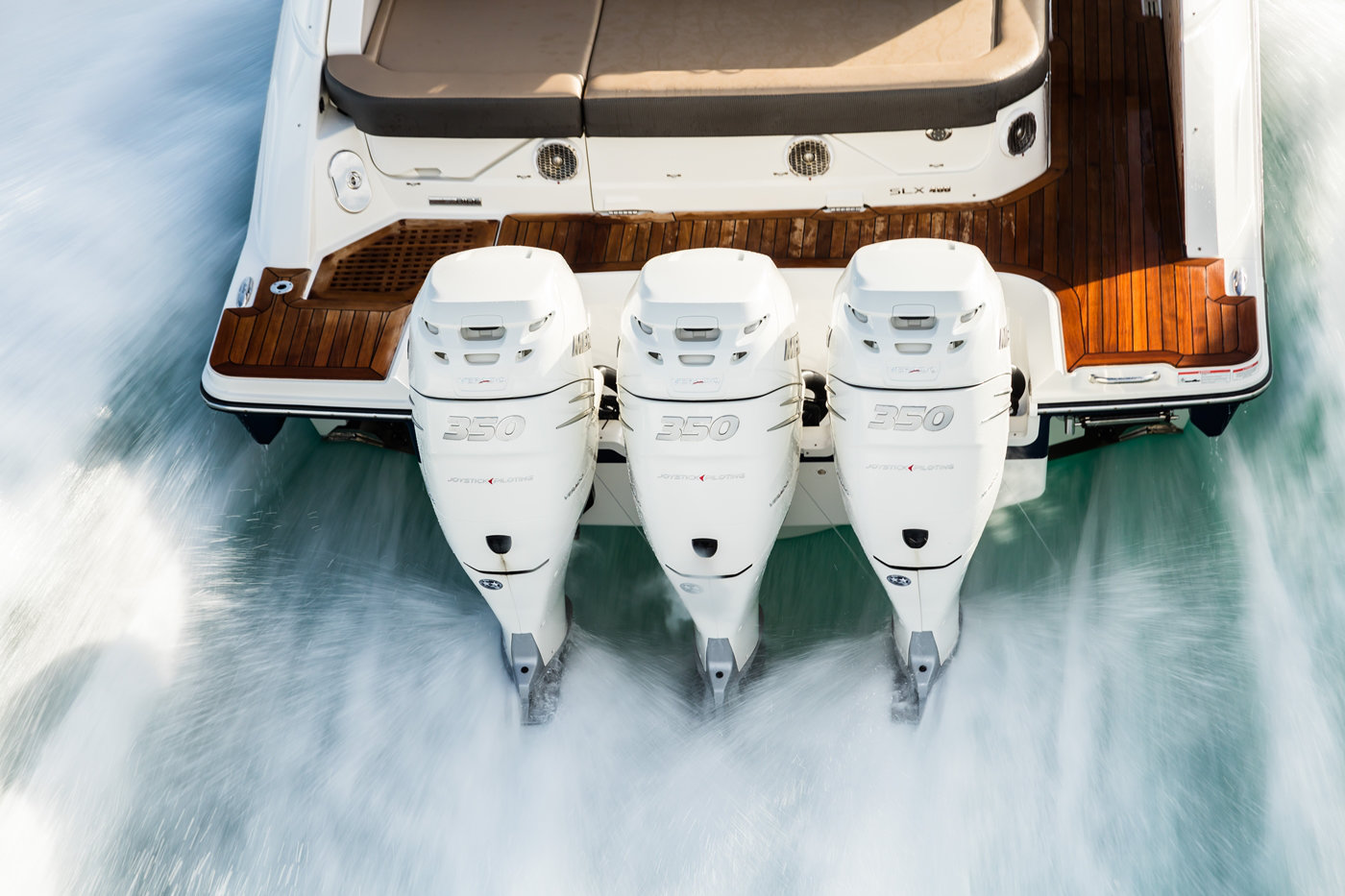 Suchen Sie temporeiches Fahrtvergnügen, eine fahrbare Badeinsel oder einfach nur einen geräumigen Daycruiser für viele Passagiere? Sie müssen sich nicht entscheiden: Die Sea Ray SLX 400 OB bietet Ihnen all das in einem Boot und genügt dabei höchsten Ansprüchen. Denn die drei leistungsstarken 350 PS Mercury Verado Außenbordmotoren sind selbst bei hohem Tempo geräuscharm und lassen sich über die Axius Joystick-Steuerung leicht bedienen. So können Sie die SLX 400 unglaublich präzise manövrieren – auch dank eines Armaturenbretts mit zwei 12-Zoll-Displays von Raymarine.